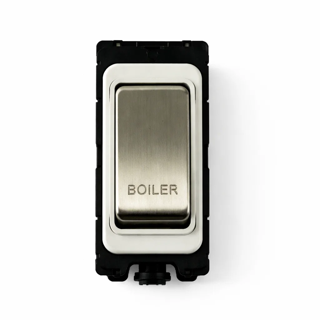 G&H Electrical Grid Switch Brushed Steel and White DP Switch - 'Boiler' G-576SS-BR