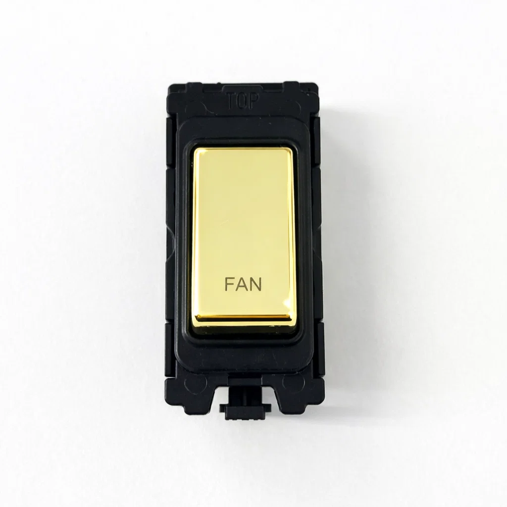 G&H Electrical Grid Switch Polished Brass and Black DP Switch - 'Fan' G-476PB-FN
