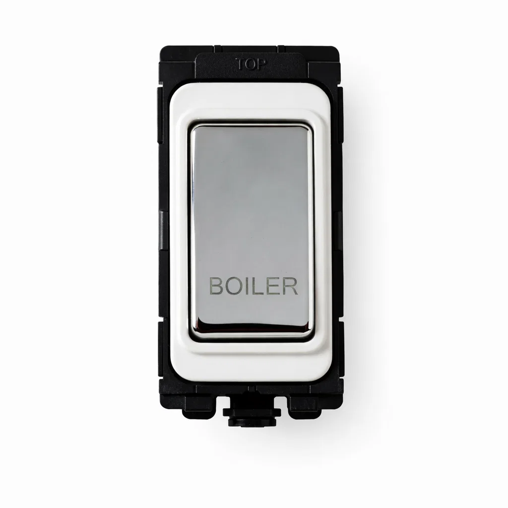 G&H Electrical Grid Switch Polished Chrome and White DP Switch - 'Boiler' G-576PC-BR