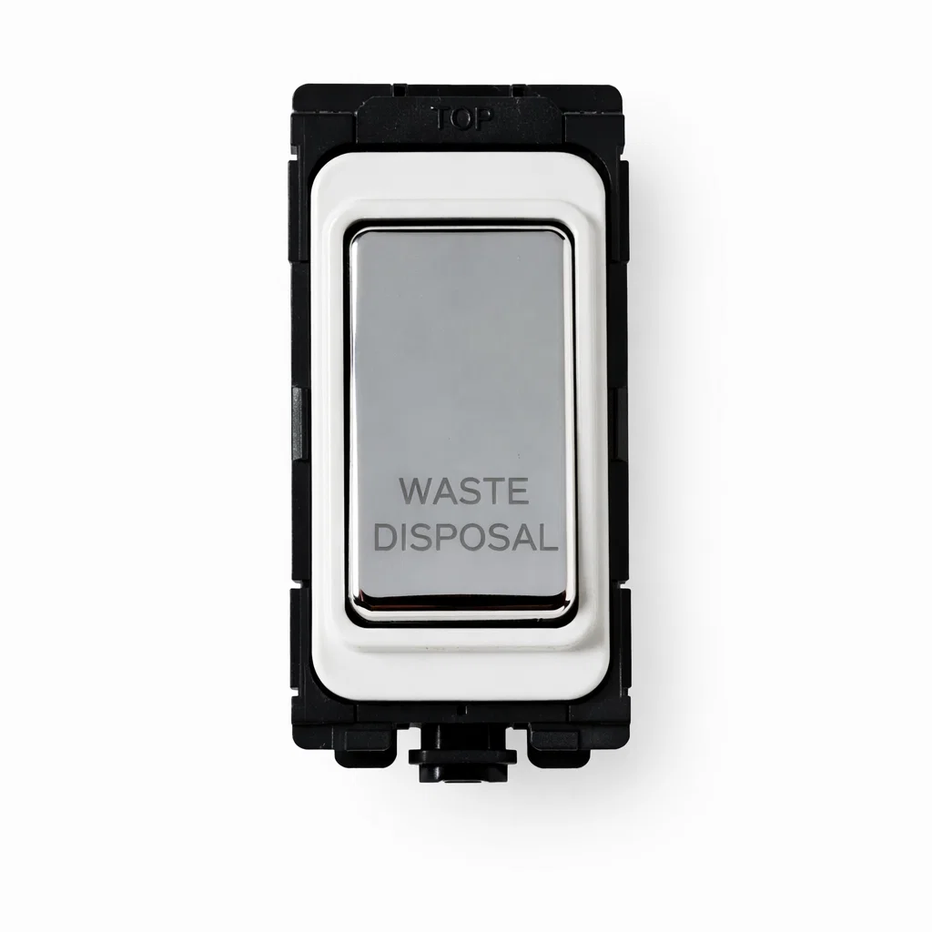 G&H Electrical Grid Switch Polished Chrome and White DP Switch - 'Waste Disposal' G-576PC-WD