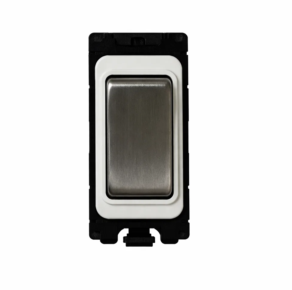G&H Electrical Grid Switch White and Brushed Steel 2-Way and Centre Off Retractive Switch G-573SS