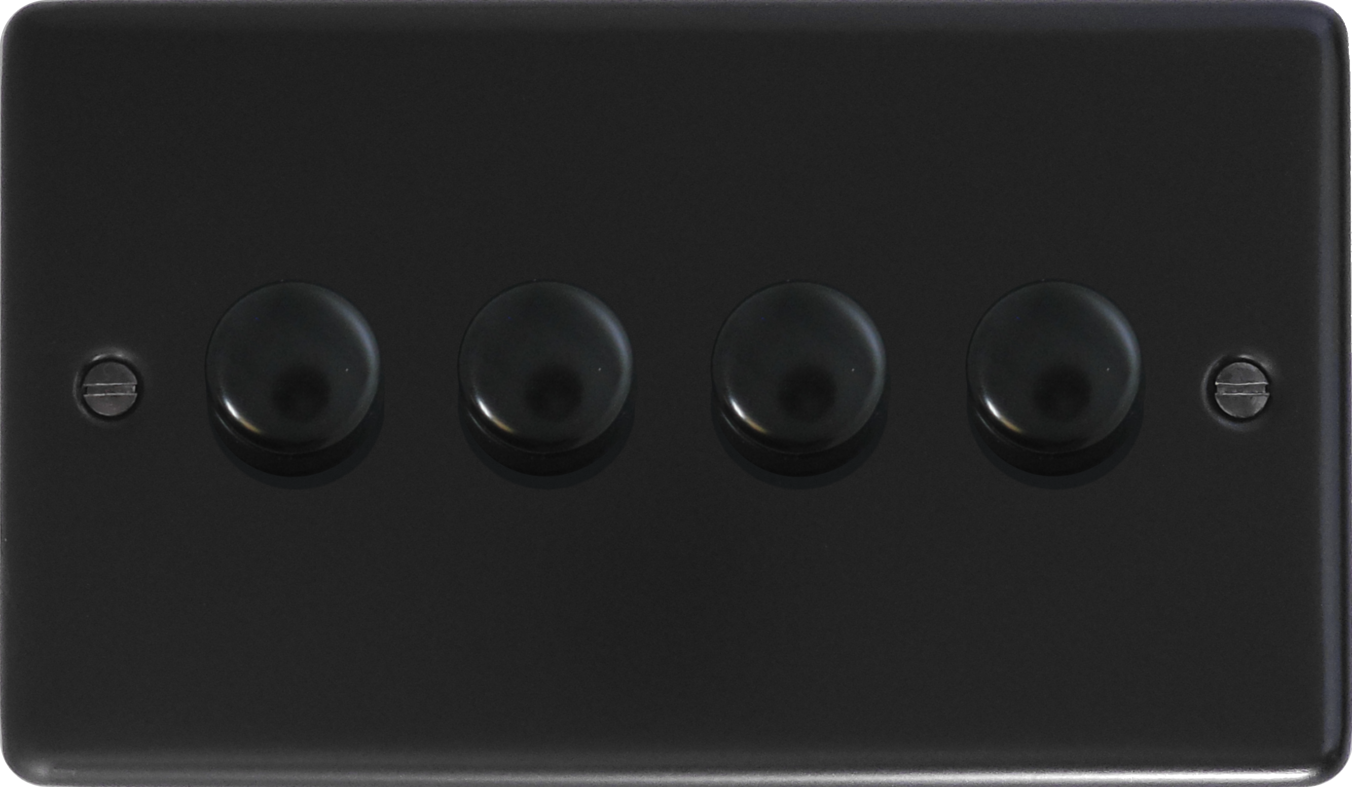 This is a four gang matt black LED dimmer from G+H Electrical Accessories.
