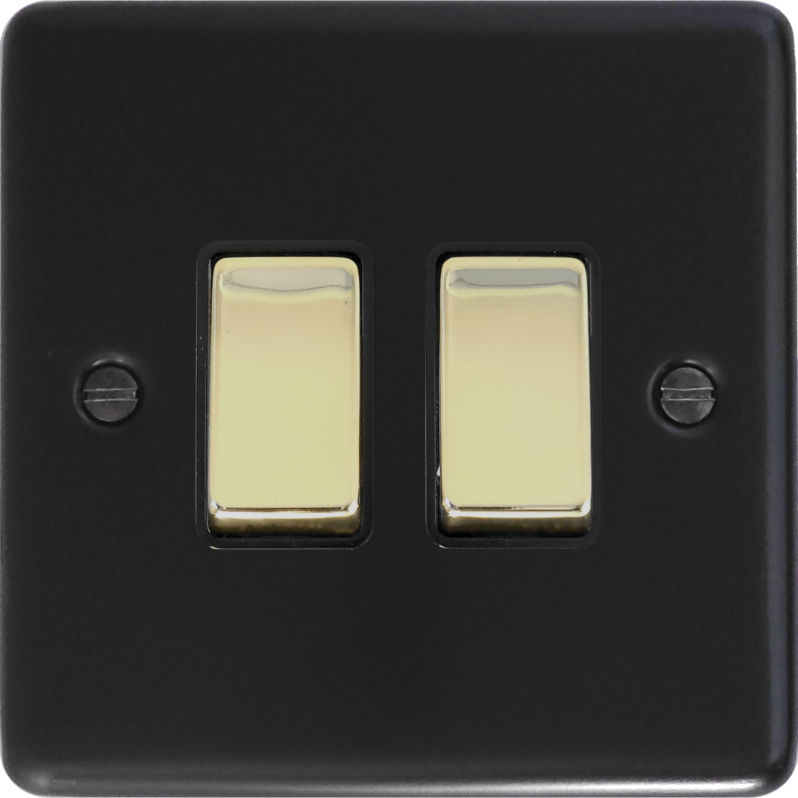 Matt Black Light Switch (2 Gang/Polished Brass Switch) CL.302PB.FB