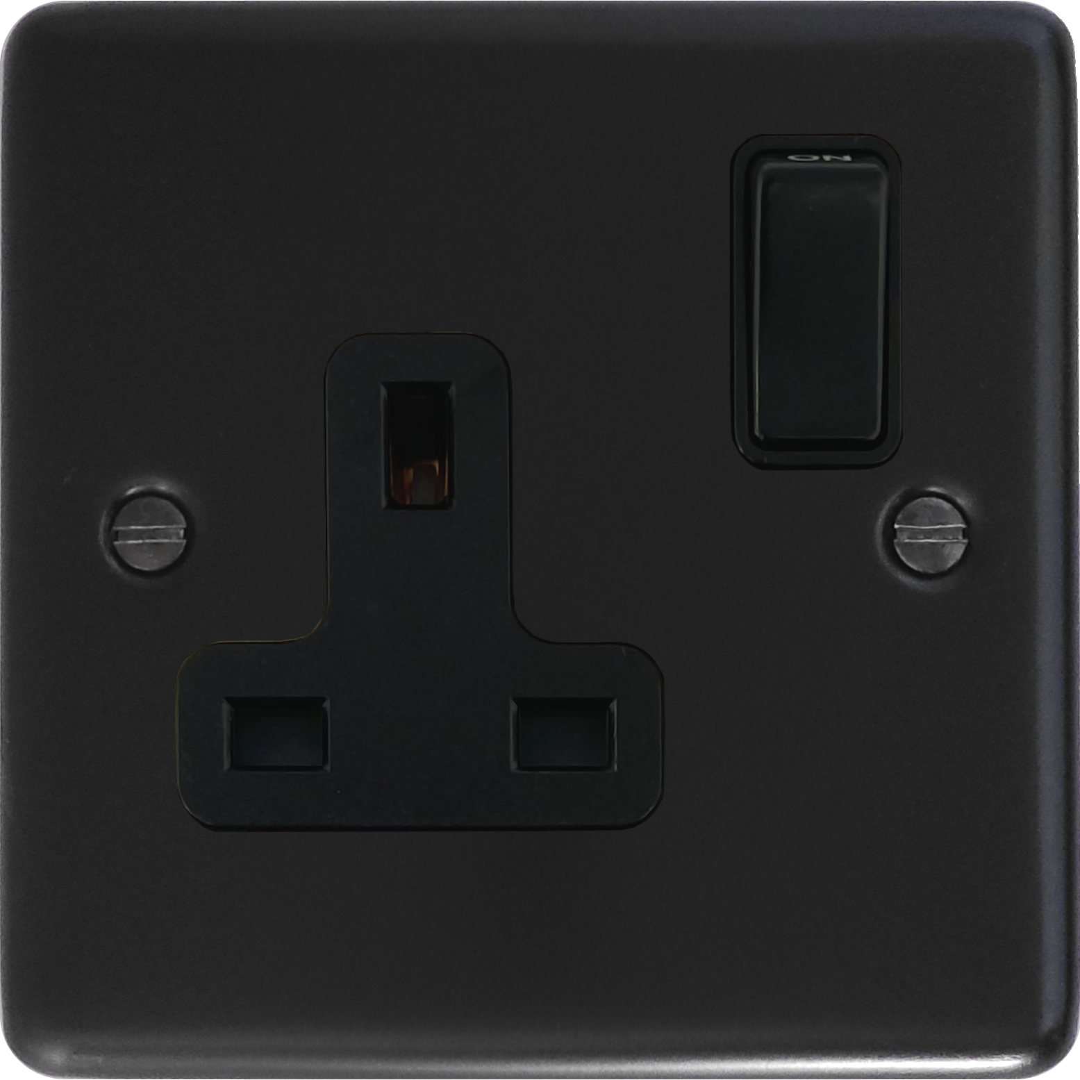 It is a single metal plate with a powder coated matt black finish. The socket inserts and switch are made of black plastic. The socket is a 13 amp DP socket.