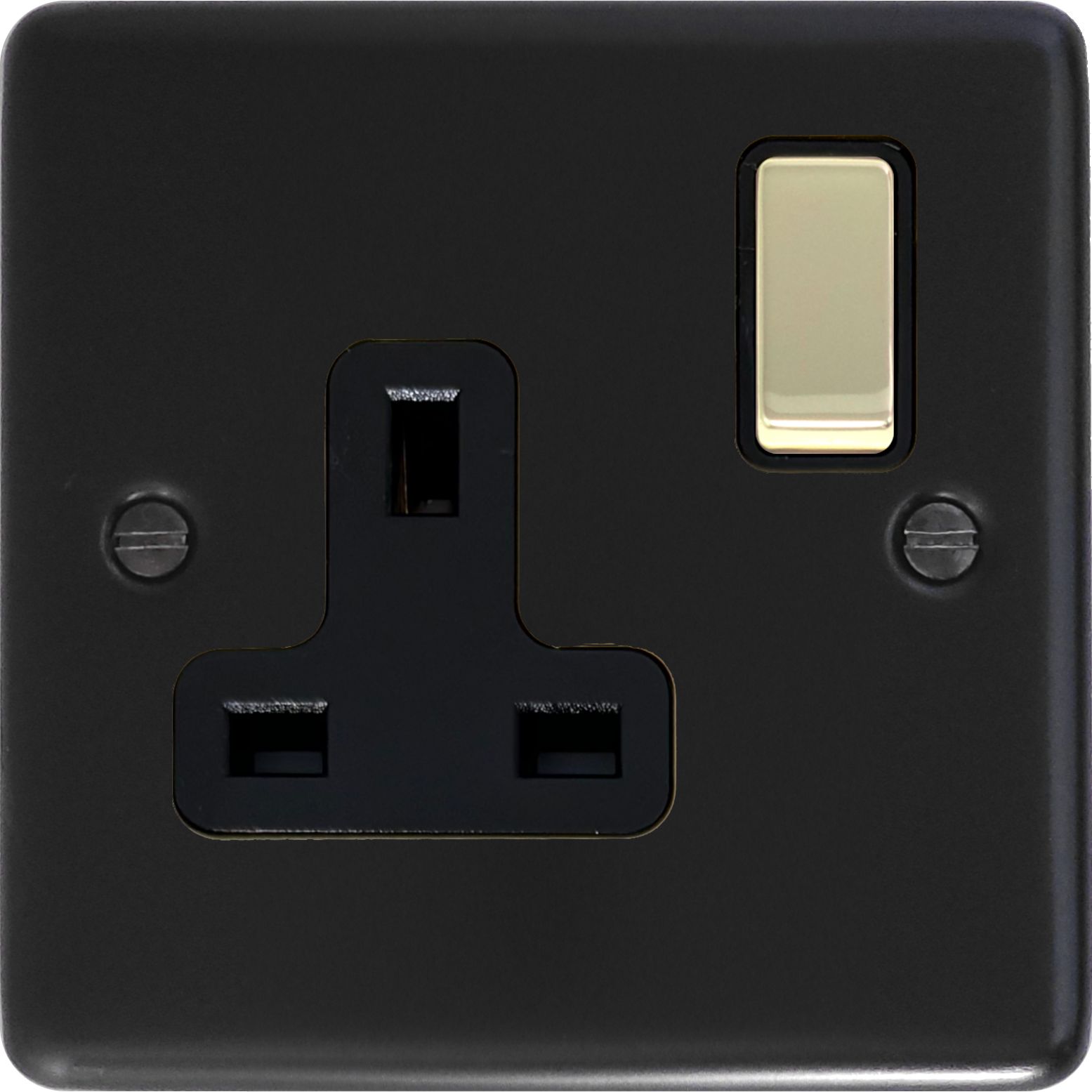 Matt Black Single Socket (Polished Brass Switch) - CFB309-PB