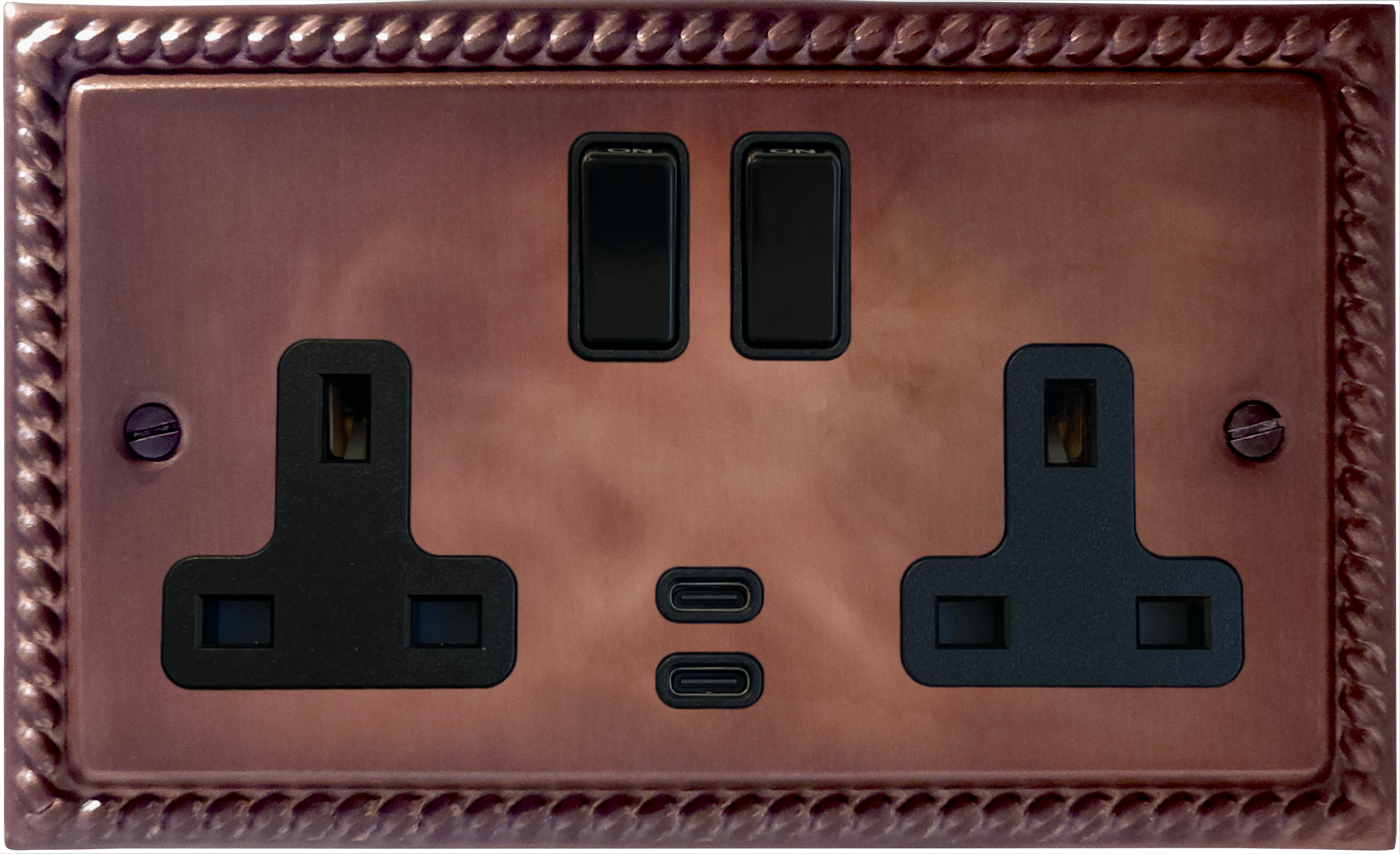 Monarch Tarnished Copper Double Socket with USB (USB-C/Black Switches) GE.913B.TC