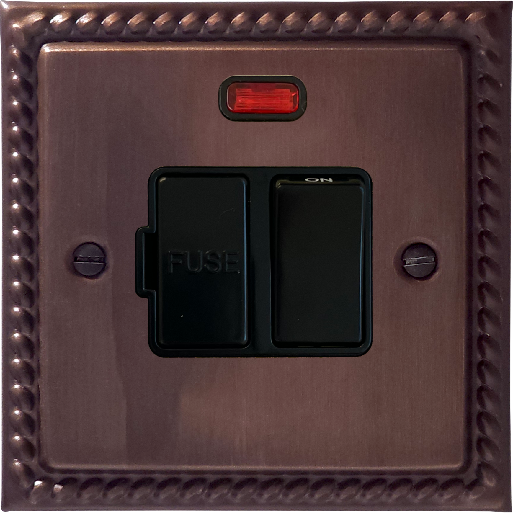 Monarch Tarnished Copper Switched Fused Spur with Neon (Black Switch) GE.27B.TC