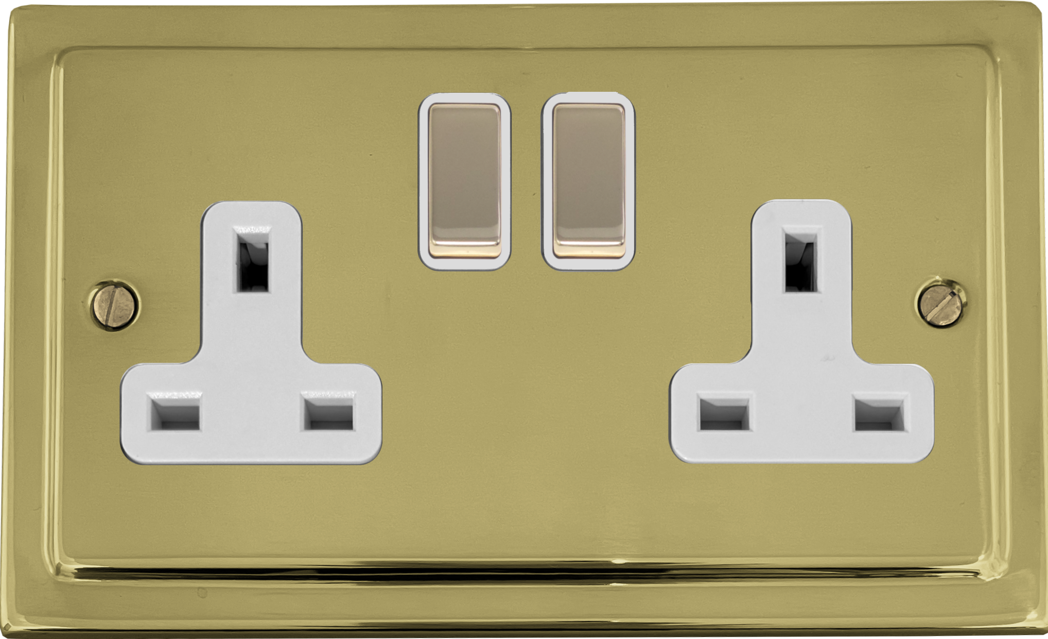 Polished Brass Double Socket (Brass Switches/White Inserts) - TB210