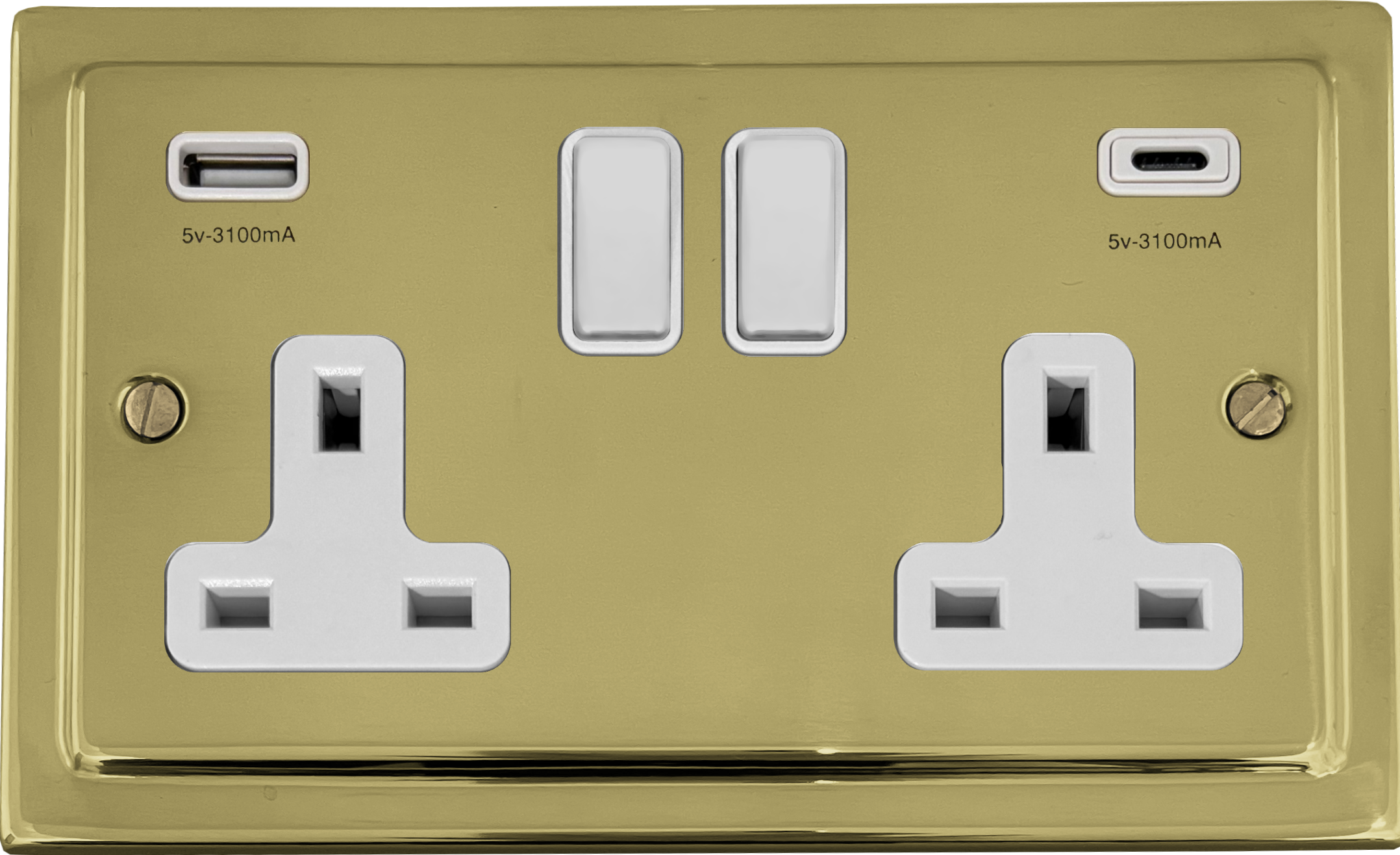 Polished Brass Double Socket with USB (USB-A and USB-C/White Switches) VI.911W.B
