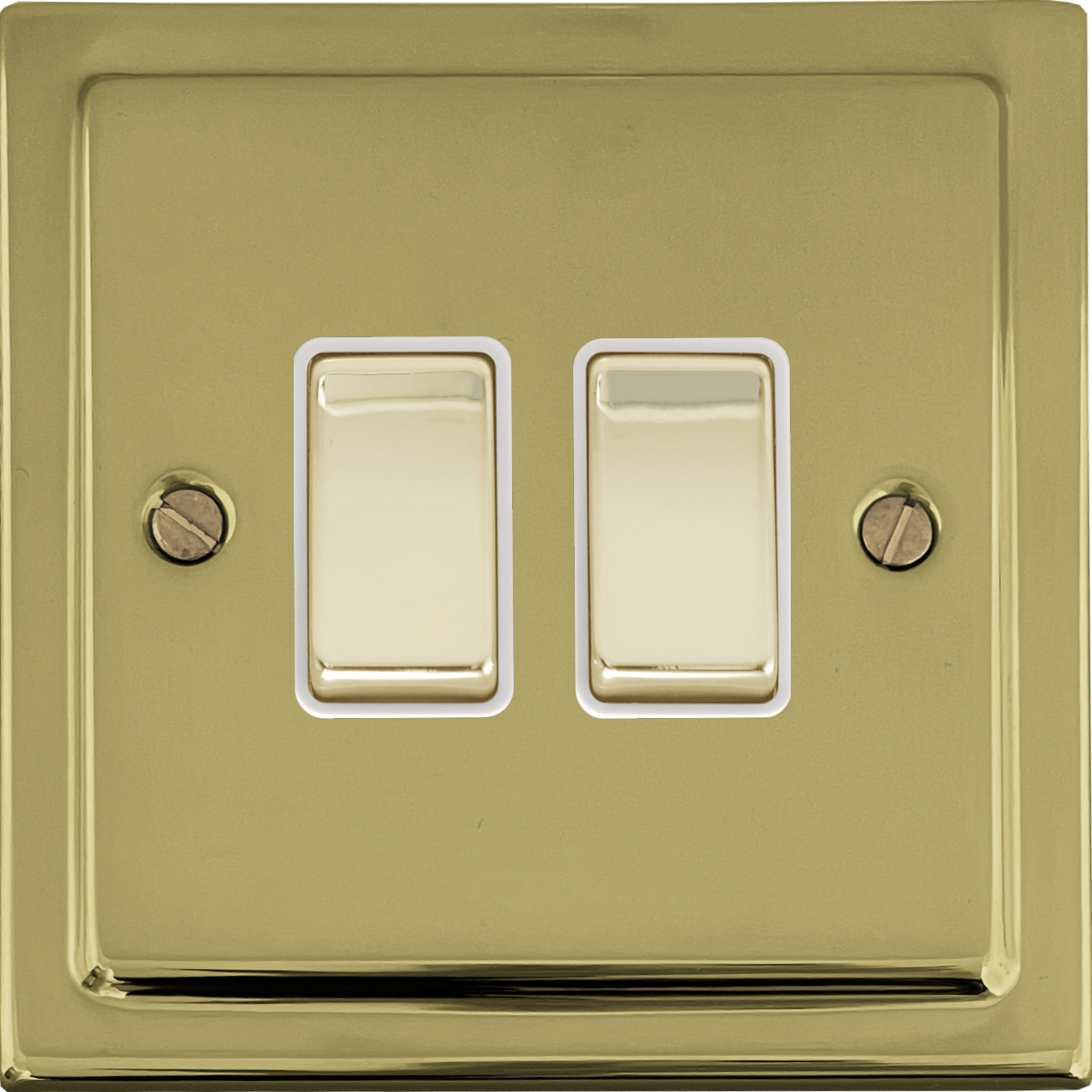 Polished Brass Light Switch (2 Gang/Brass Switches/White Inserts) VI.202.B
