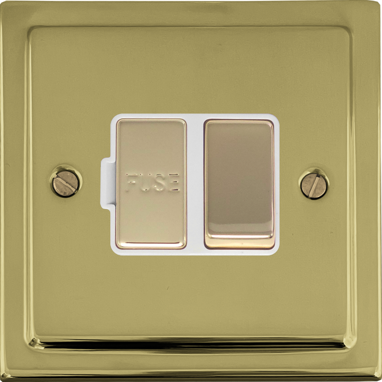 Polished Brass Switched Fused Spur (Brass Switch/White Inserts) - TB257