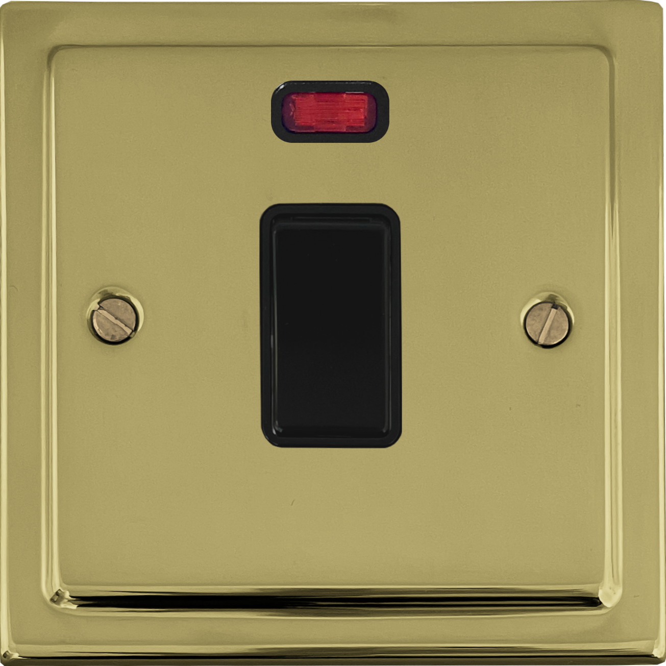 Polished Brass Unlaquered 20A DP Switch with Neon (Black Switch) VI.26B.BUL