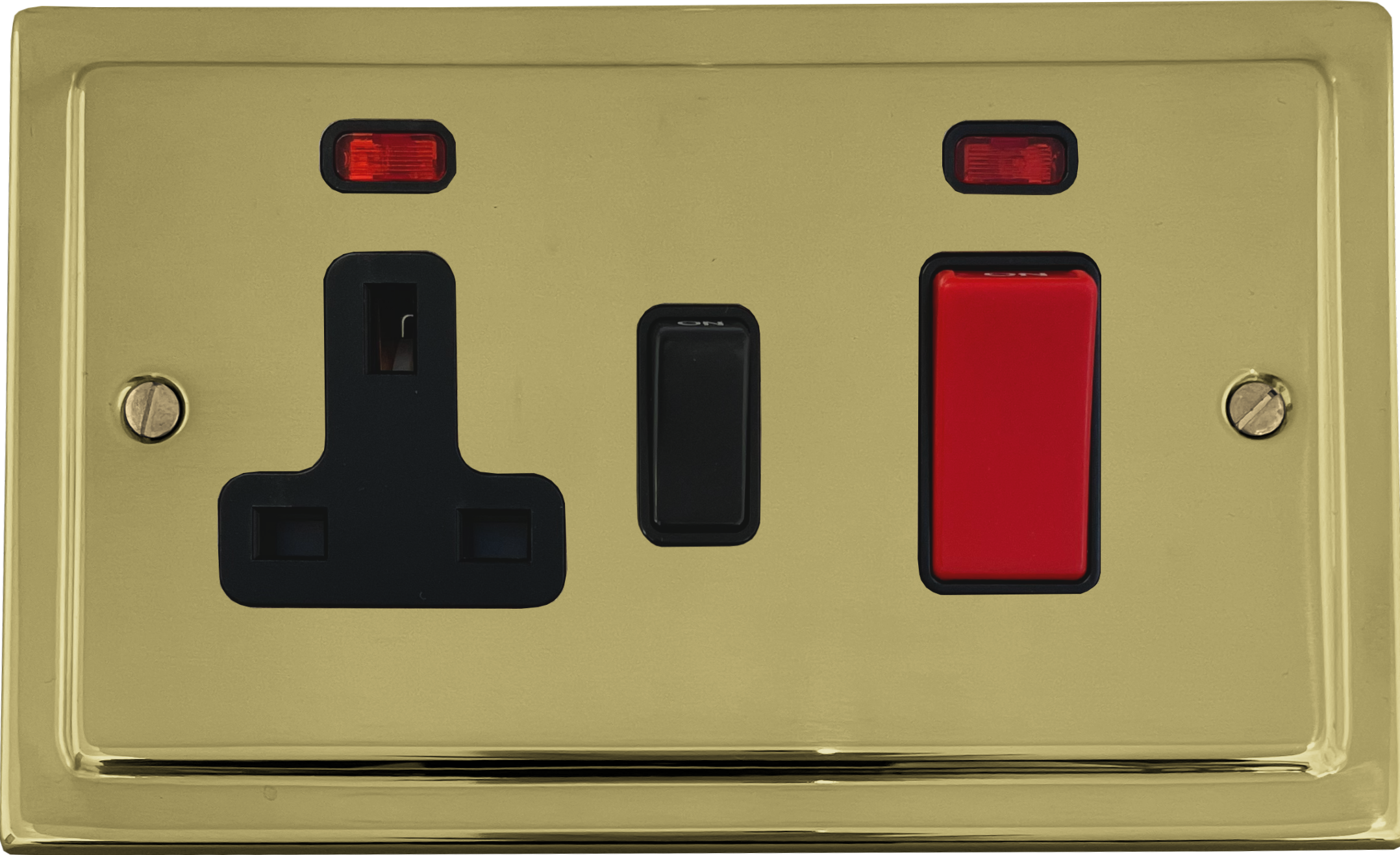 Polished Brass Unlaquered Cooker Switch with Socket (Black Switch) VI.29B.BUL