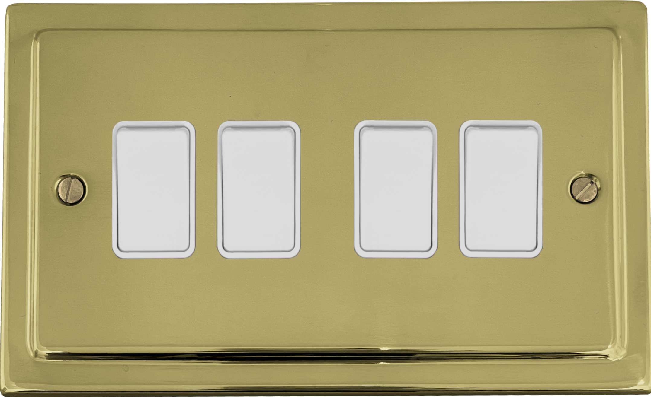 Polished Brass Unlaquered Light Switch (4 Gang/White Switches) VI.4W.BUL
