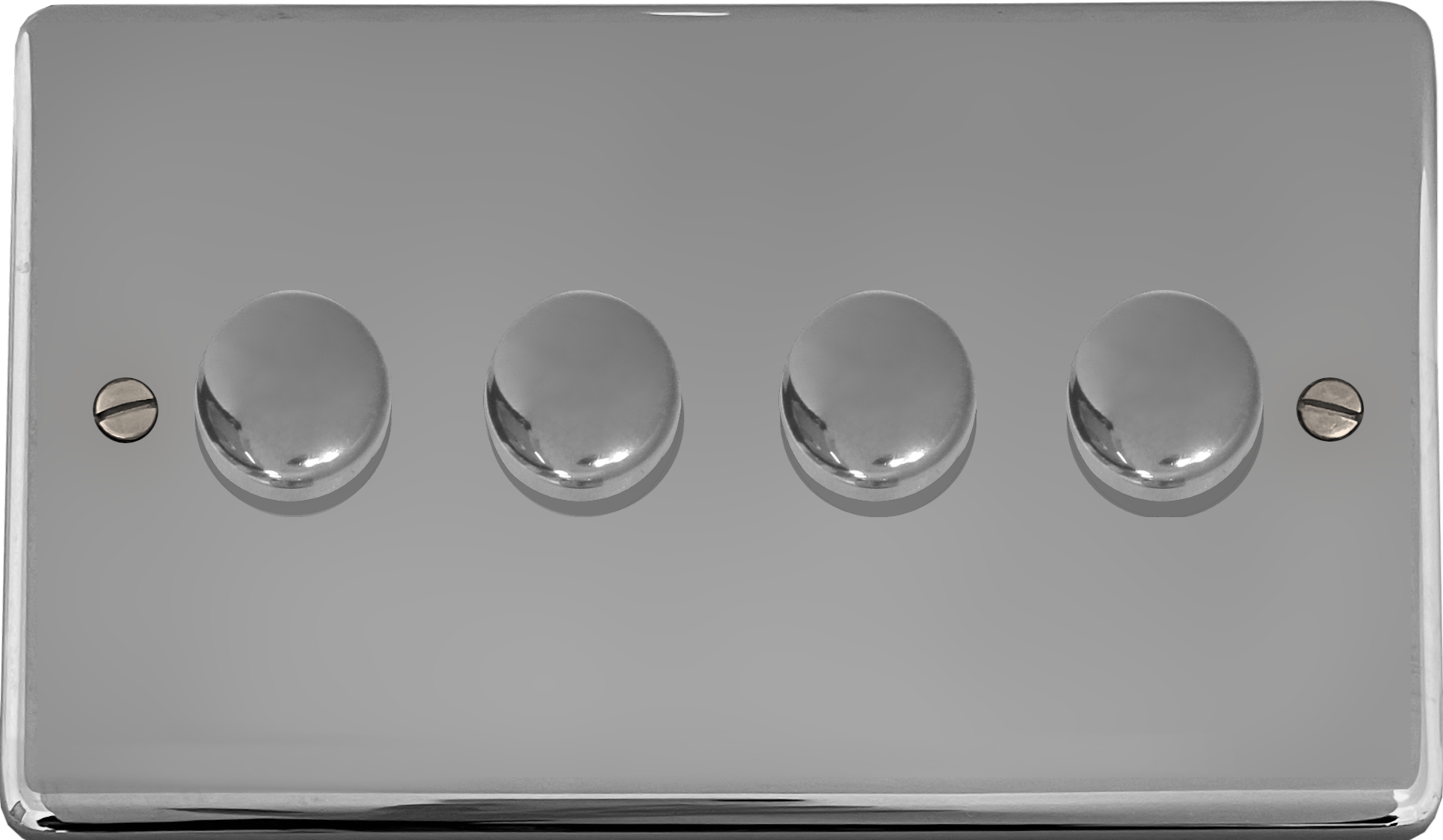 This is a G+H Electrical Accessories polished chrome four gang LED dimmer switch.