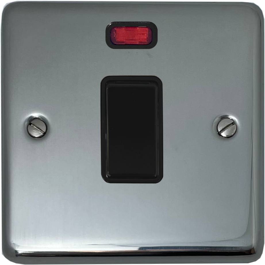 Polished Steel 20A DP Switch with Neon (Black Switch) CL.26B.PS