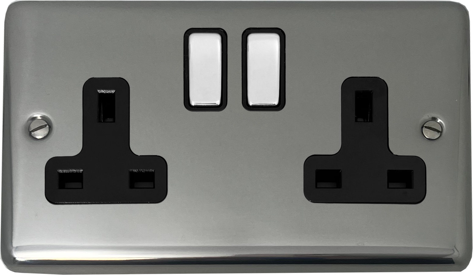 Polished Steel Double Socket (Black Insert/Chrome Switch) CL.310.PS