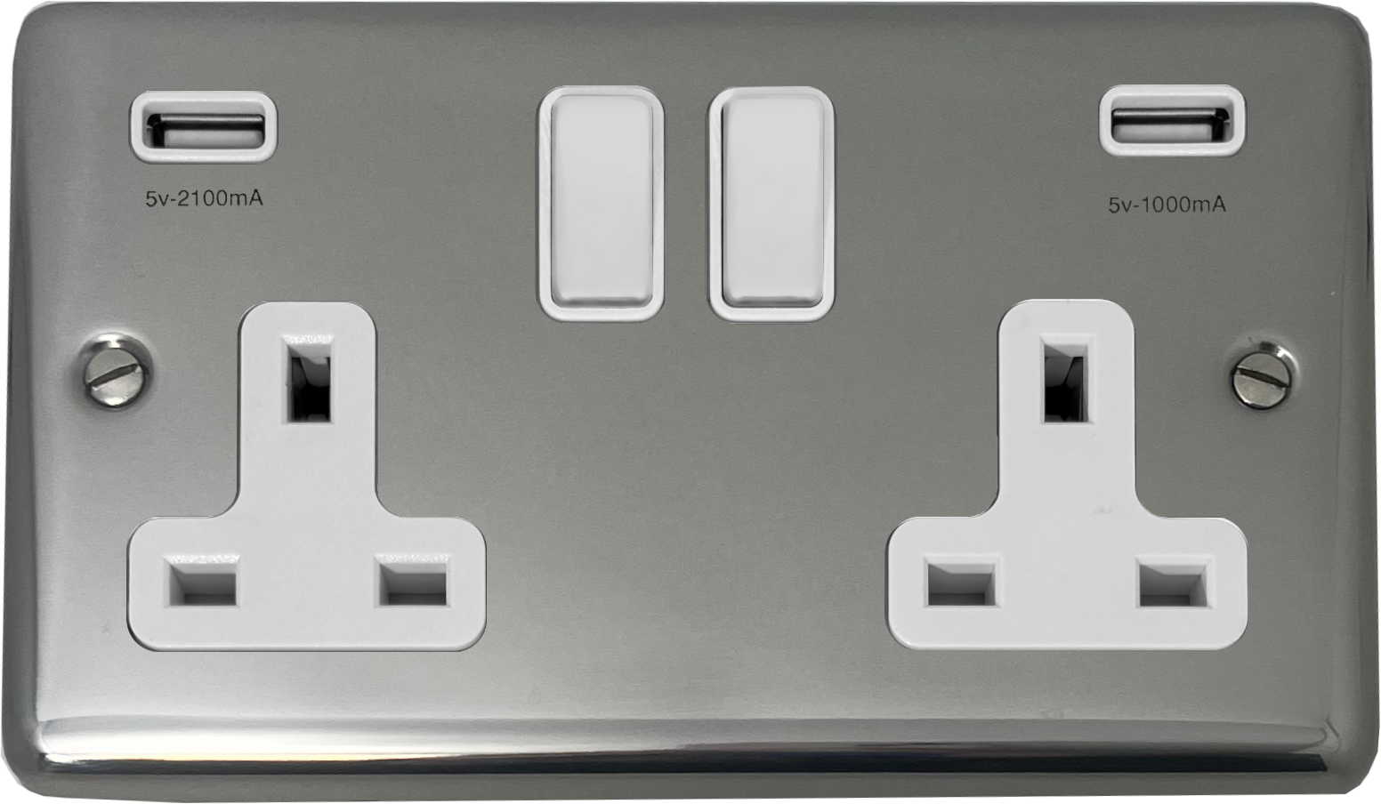 Polished Steel Double Socket with USB (White Switches) CL.910W.PS