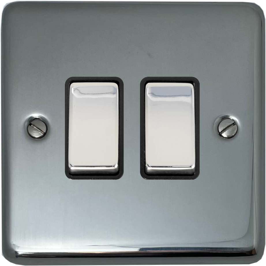Polished Steel Light Switch (2 Gang/Black Insert/Chrome Switches) CL.302.PS