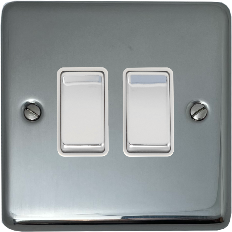 Polished Steel Light Switch (2 Gang/White Insert/Chrome Switch) CL.202.PS