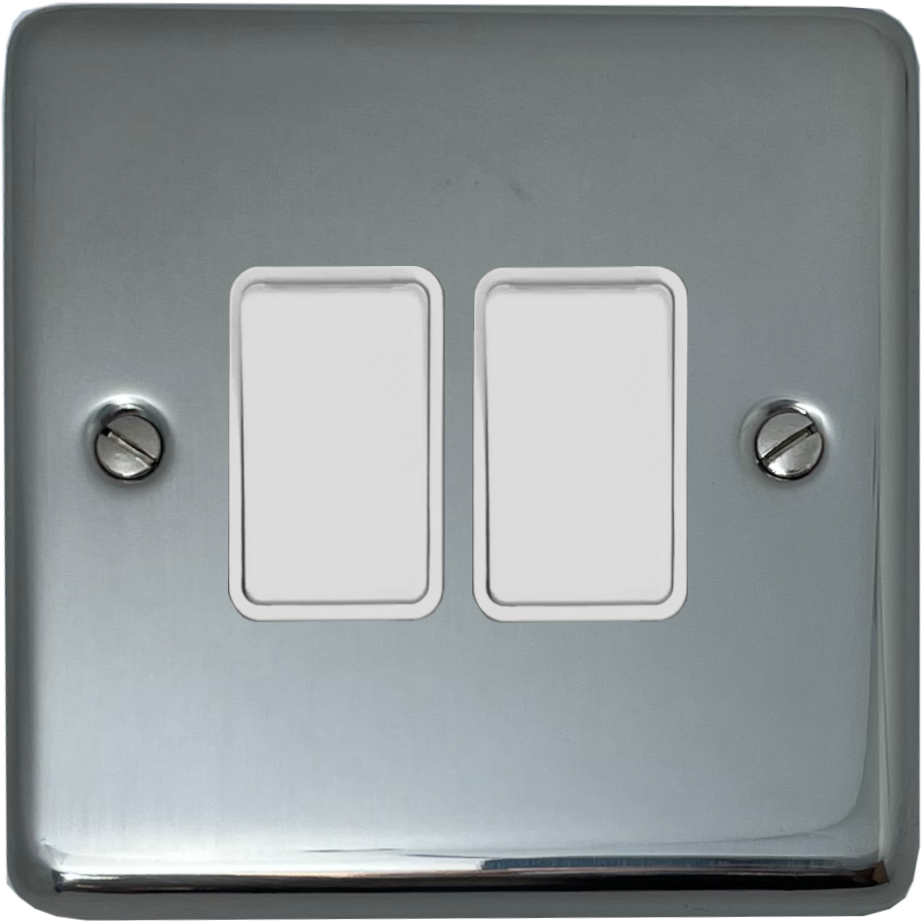 Polished Steel Light Switch (2 Gang/White Switches) CL.2W.PS