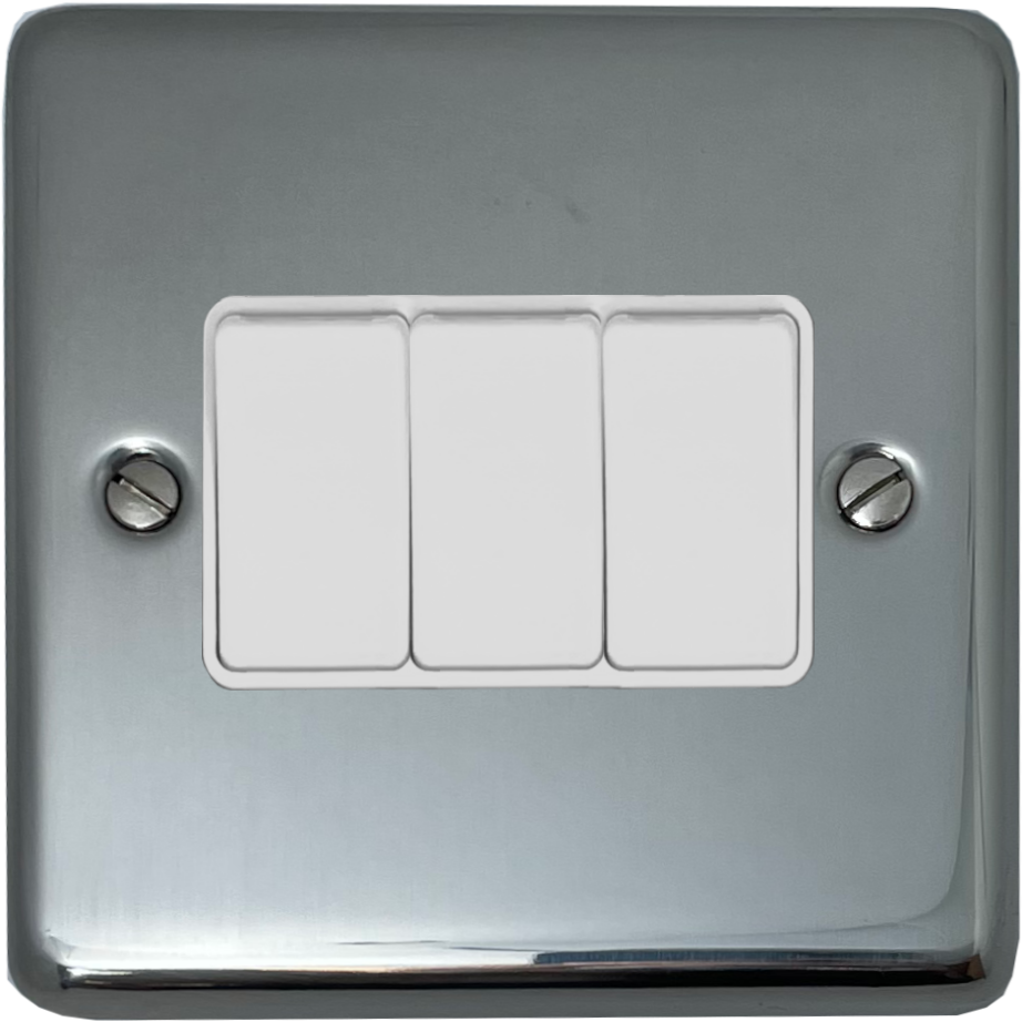 Polished Steel Light Switch (3 Gang/White Switches) CL.3W.PS