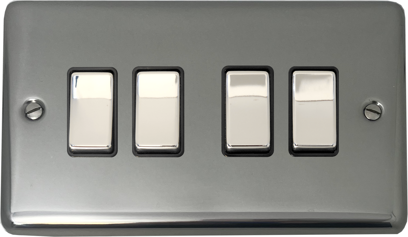 Polished Steel Light Switch (4 Gang/Black Insert/Chrome Switches) - CPS304