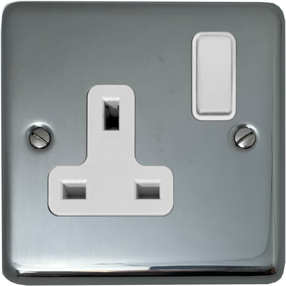 Polished Steel Single Socket (White Switch) CL.9W.PS