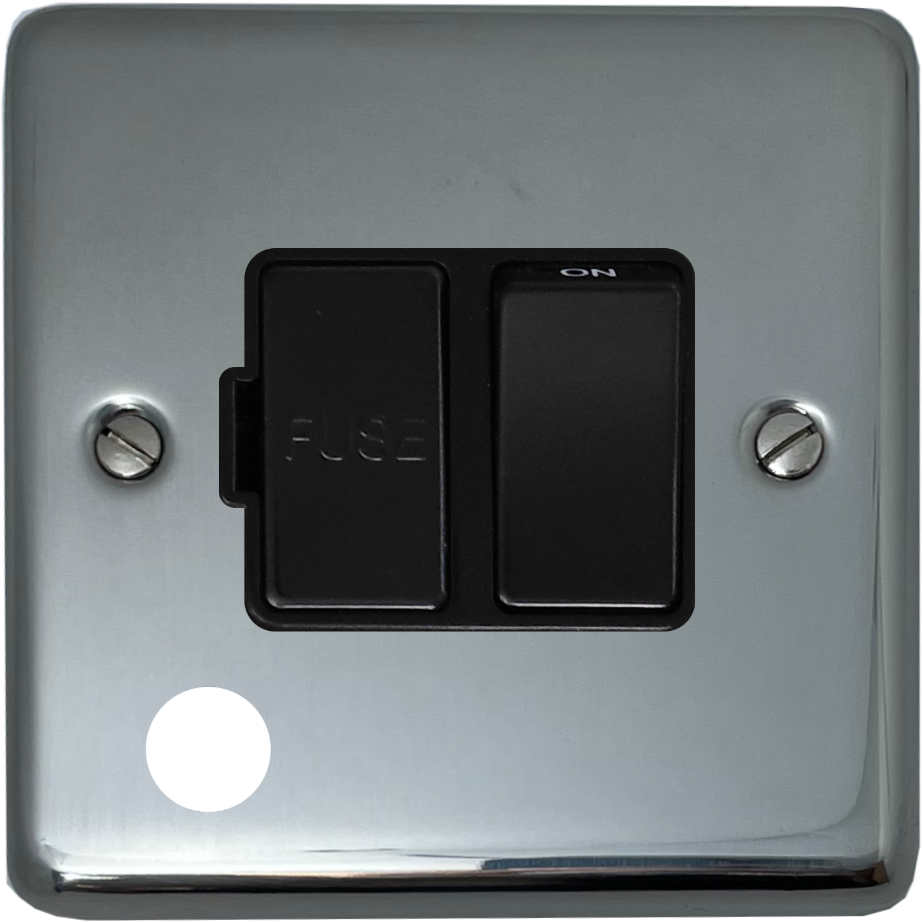 Polished Steel Switched Fused Spur with Flex Outlet (Black Switch) - CPS56B