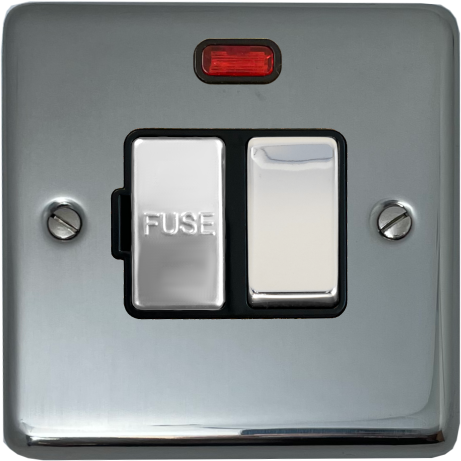 Polished Steel Switched Fused Spur with Neon (Black Insert/Chrome Switch) CL.327.PS