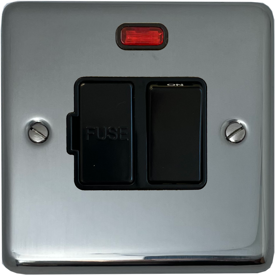 Polished Steel Switched Fused Spur with Neon (Black Switch) CL.27B.PS