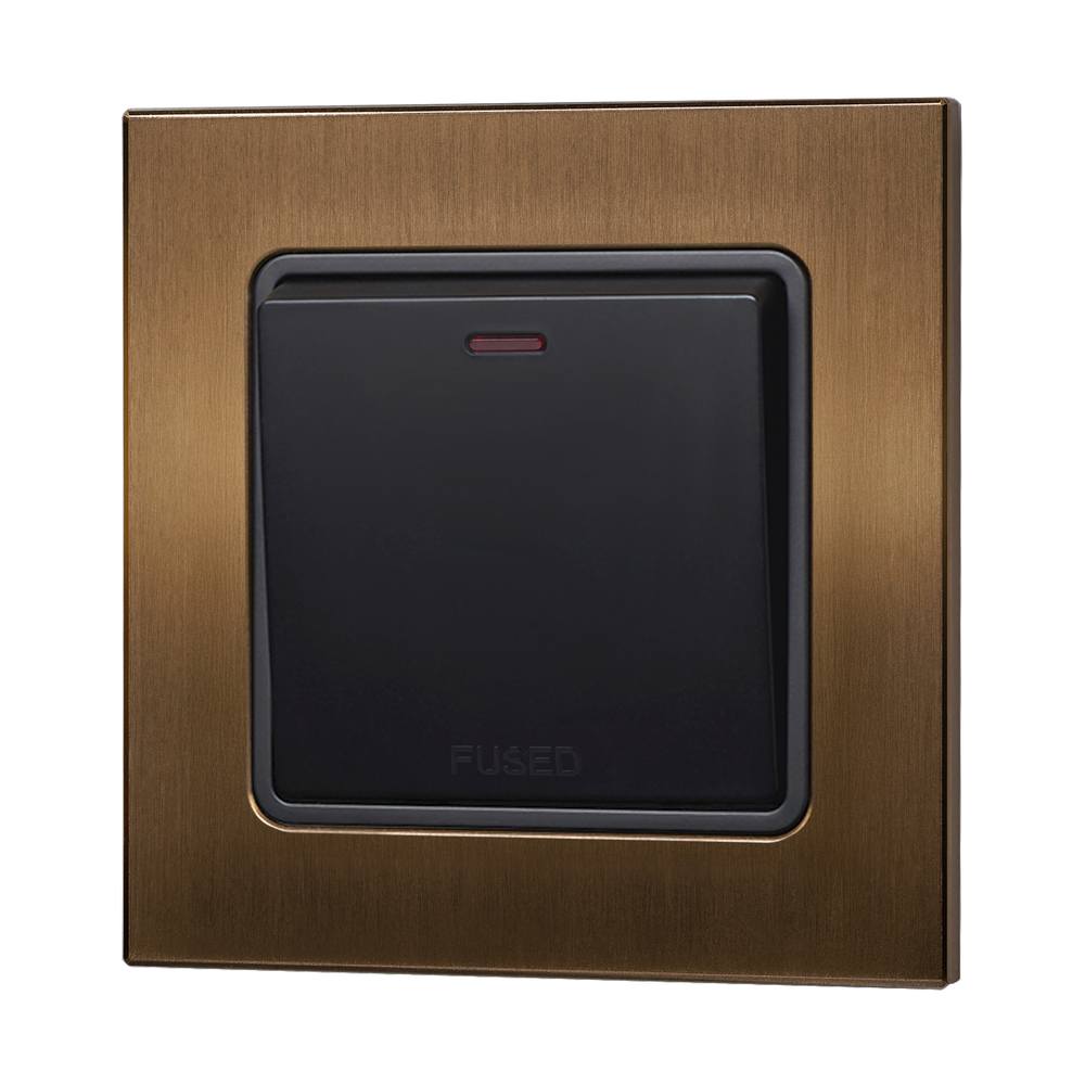 Retrotouch Aura Rocker 13A Fused Switch Black - Brushed Bronze - BM18BZ-RFSB