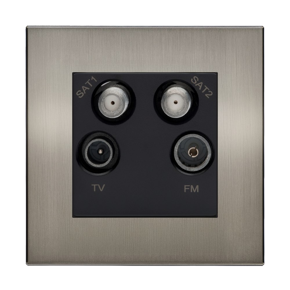 Retrotouch Aura RT Quadplexed Outlet Module (50x50mm) Black - Brushed Nickel