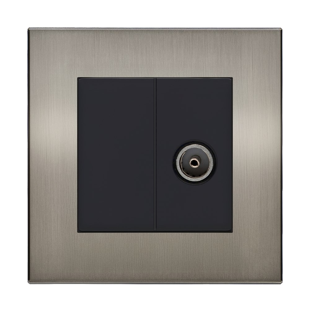 Retrotouch Aura RT TV Female Outlet (25x50mm) Black - Brushed Nickel