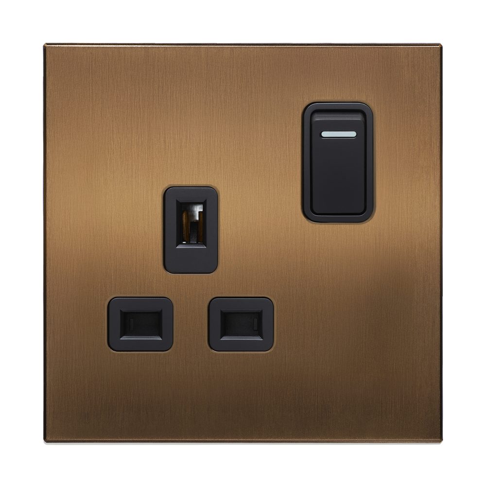 Retrotouch Aura Socket 13A Single DP Switched Black - Brushed Bronze - BM14BZ-SSSB