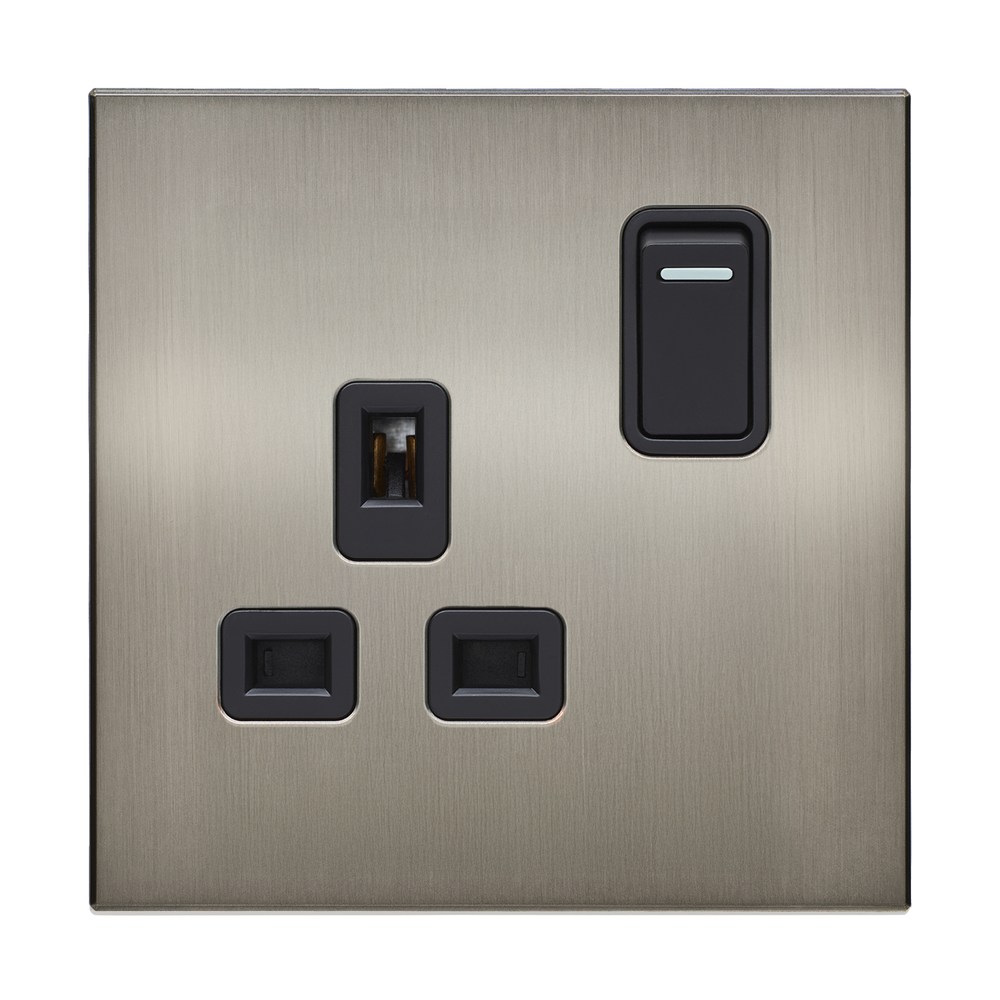 Retrotouch Aura Socket 13A Single DP Switched Black - Brushed Nickel