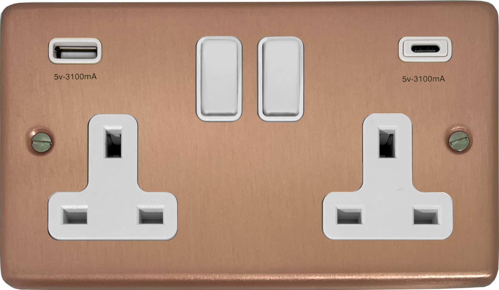 Rose Gold Double Socket with USB (USB-A and USB-C/White Switches) CL.911W.RG