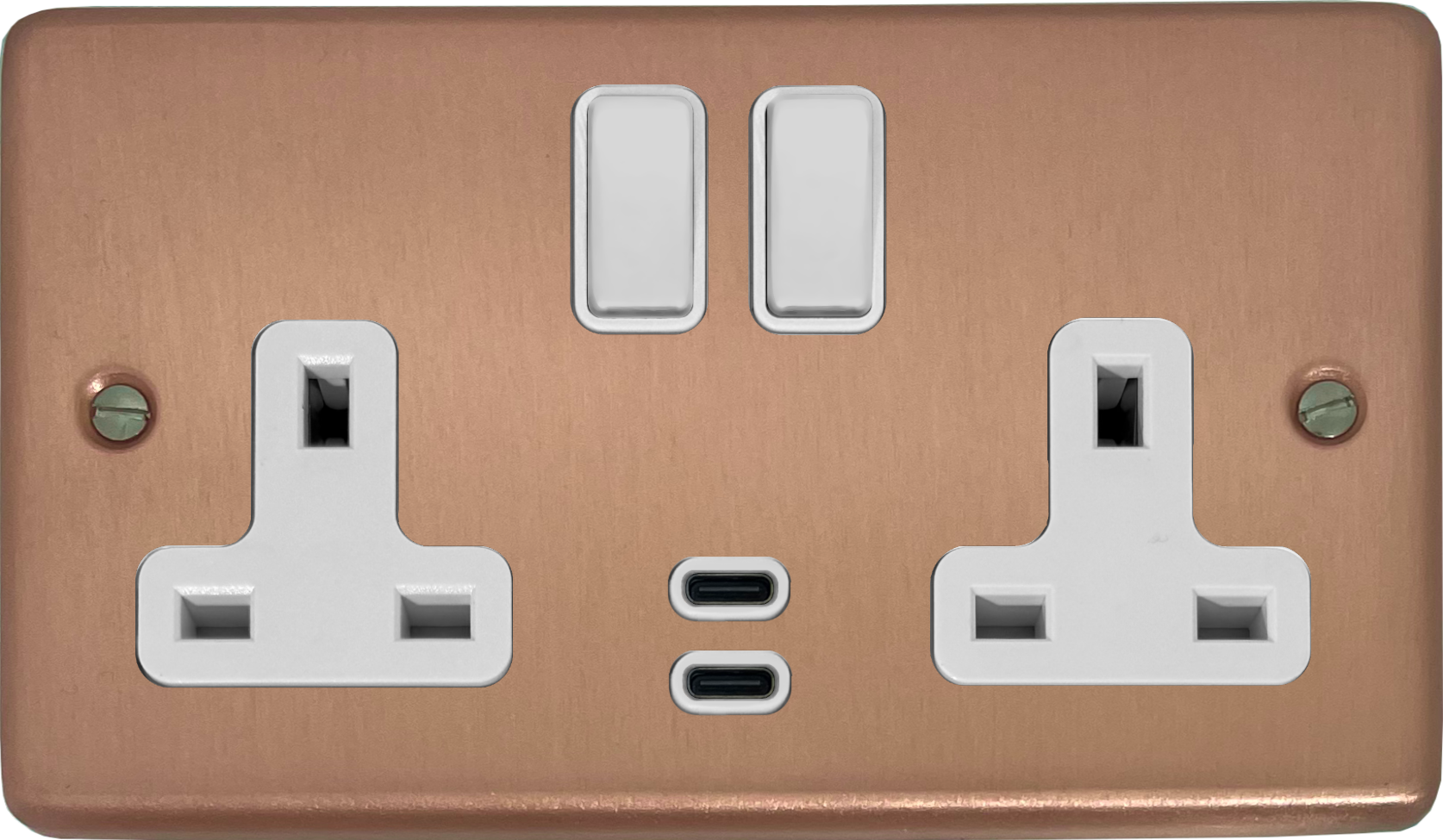 Rose Gold Double Socket with Dual USB-C (White Switches) CL.913W.RG
