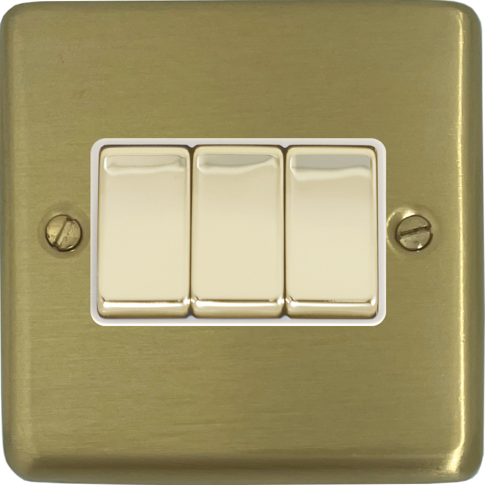 Satin Brass Light Switch (3 Gang/Brass Switch/White Inserts) CL.203.SB