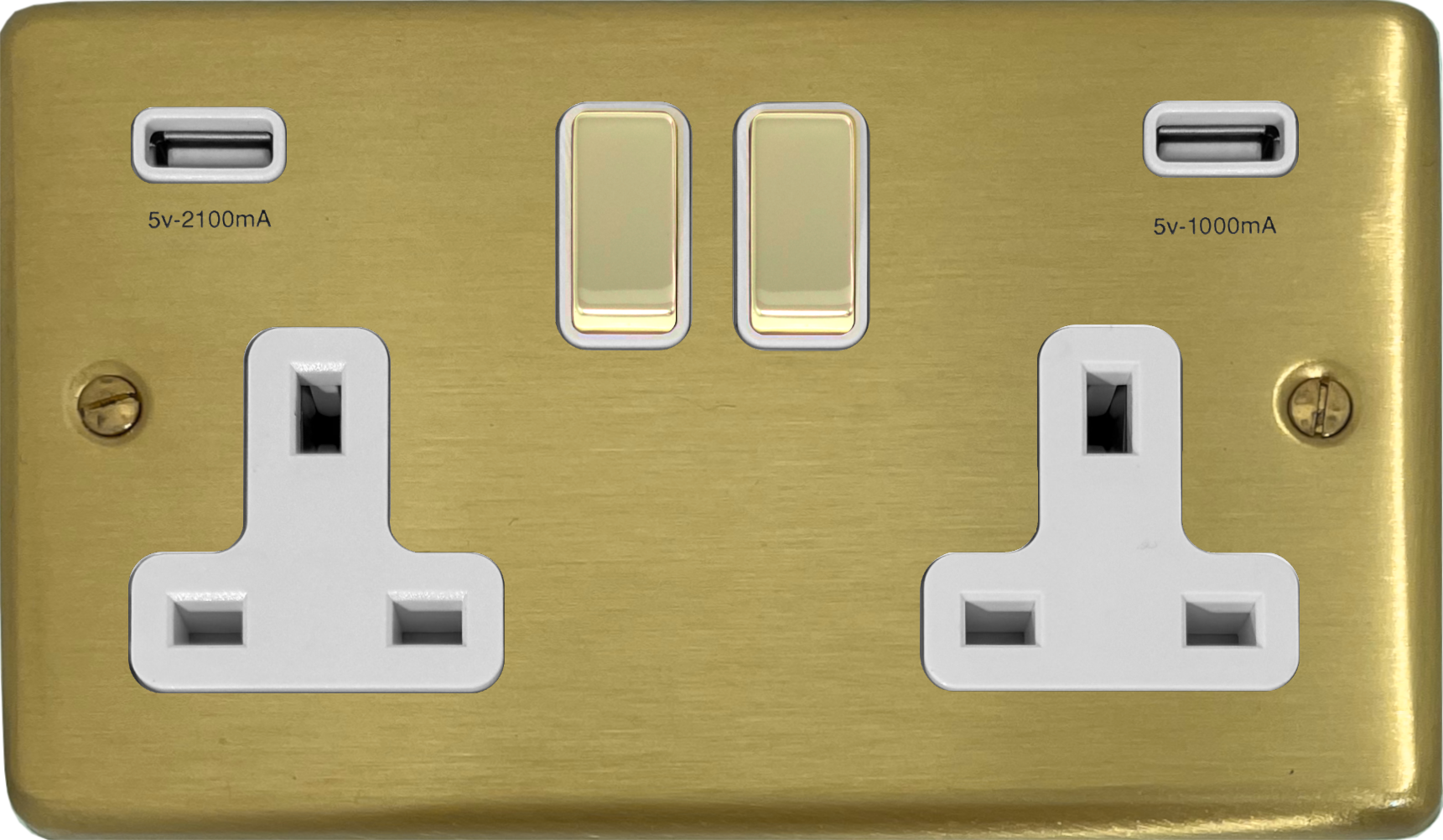 Satin Brass Socket with USB (Double Socket/Brass Switch/White Inserts) CL.2910.SB