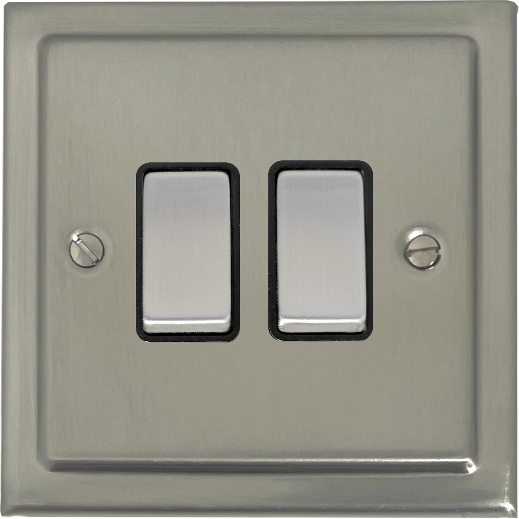Satin Nickel Light Switch (2 Gang/Metal Switch/Black Insert) - TSN302