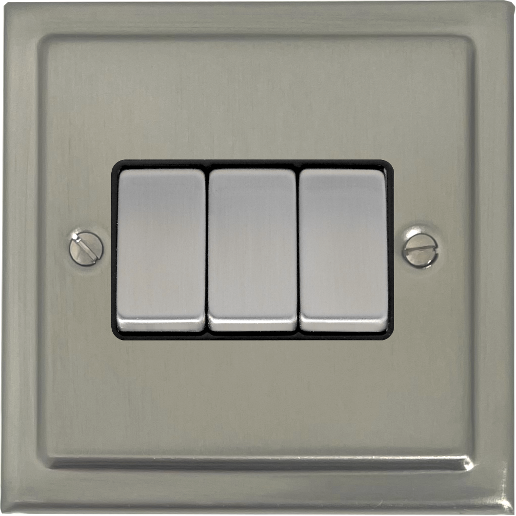 Satin Nickel Light Switch (3 Gang/Metal Switch/Black Insert) VI.303.SN