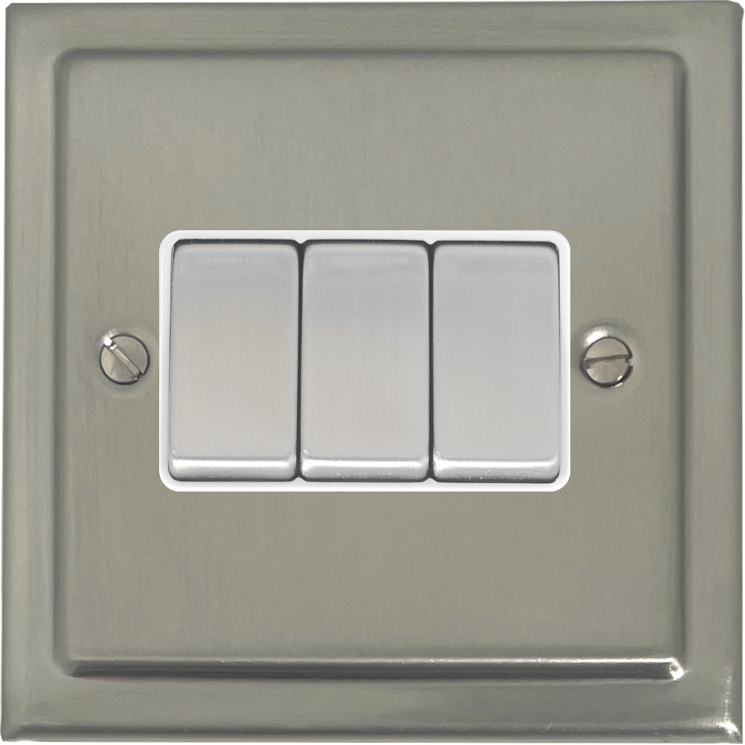 Satin Nickel Light Switch (3 Gang/Metal Switch/White Insert) VI.203.SN