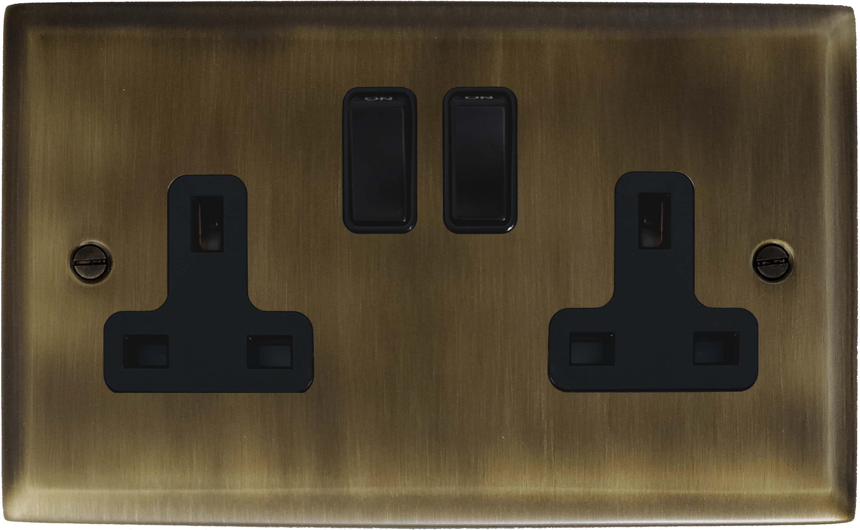 Spectrum Antique Brass Double Socket (Black Switches) EL.10B.AB