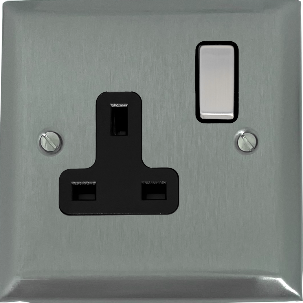 Spectrum Brushed Steel Socket (1 Gang/Black Insert) - SSS309