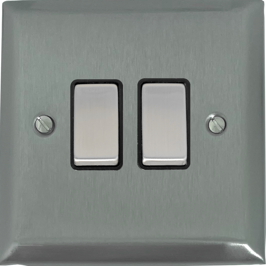 Spectrum Brushed Steel Switch (2 Gang/Black Insert) - SSS302