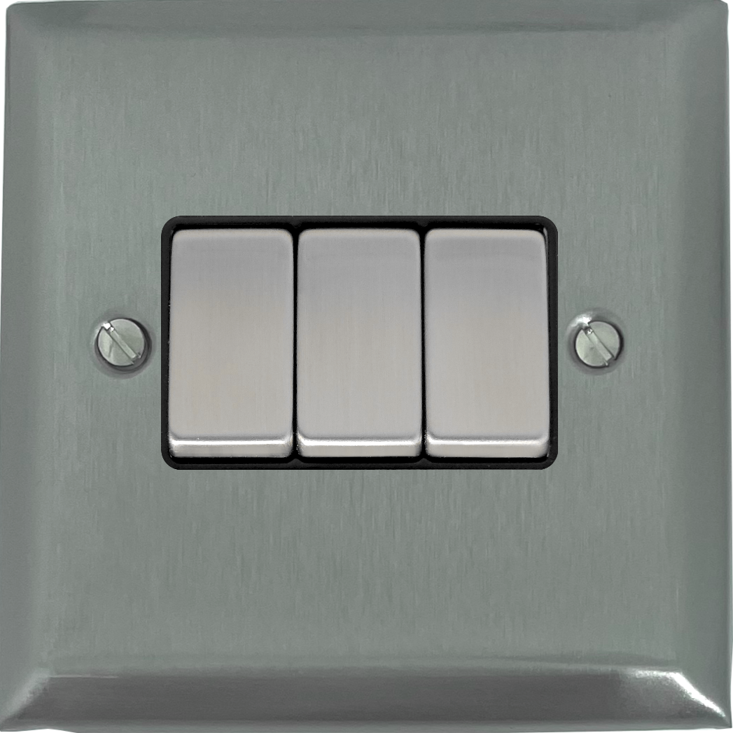 Spectrum Brushed Steel Switch (3 Gang/Black Insert) - SSS303