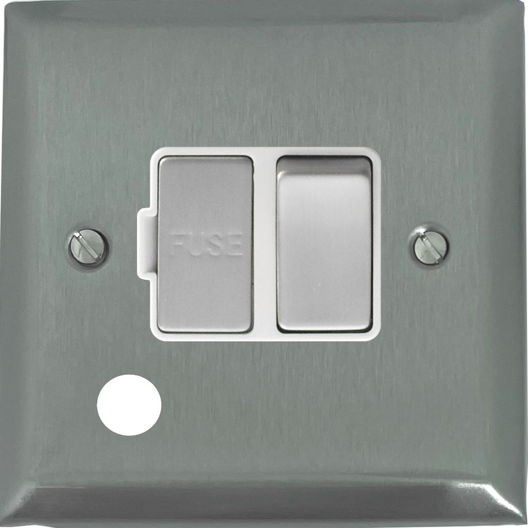 Spectrum Brushed Steel Switched Fused Spur with Flex Outlet (White Insert/Satin Chrome Switch) - SSS256