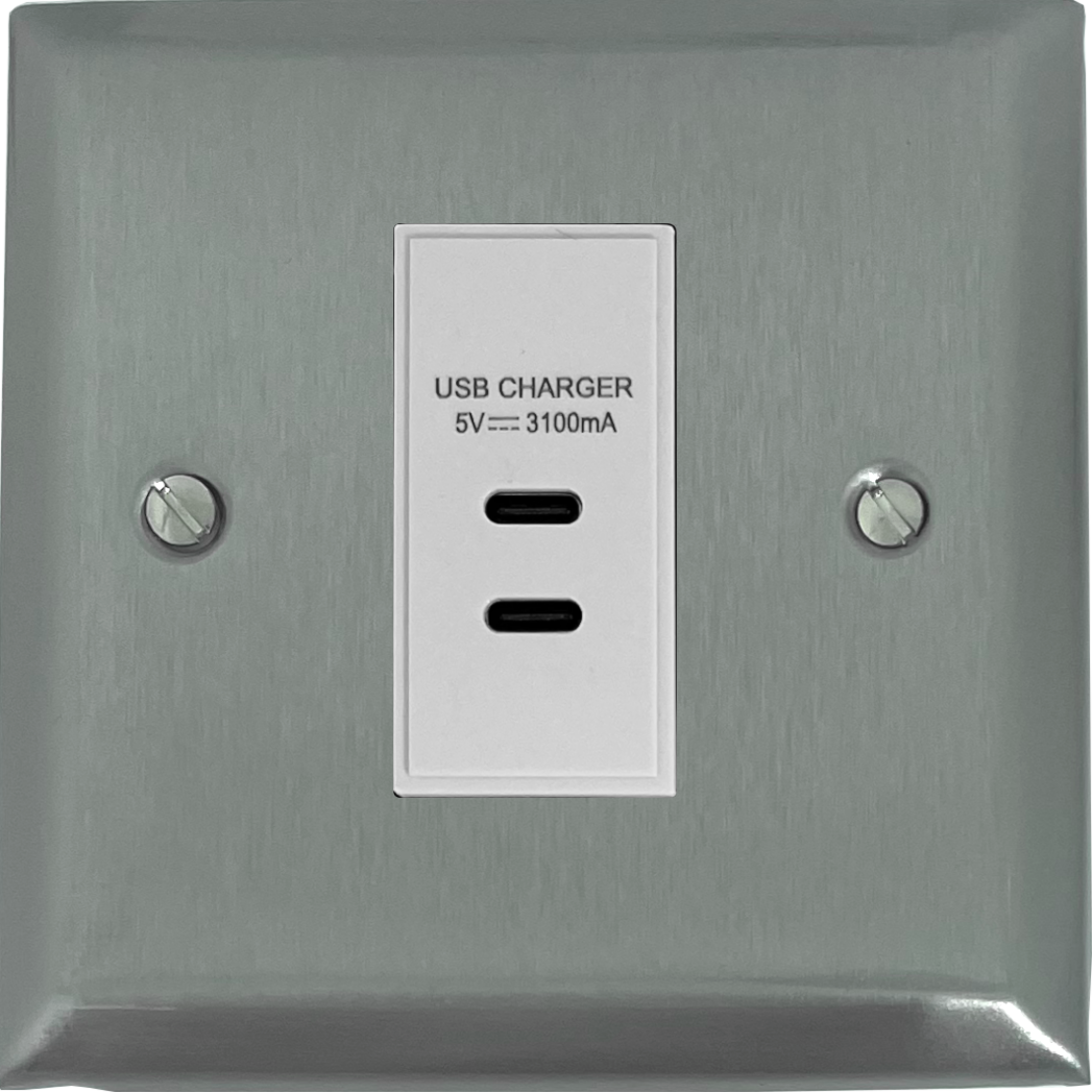 Spectrum Brushed Steel USB Charger (2x USB-C) (1Gang/White Insert) - SSS42W