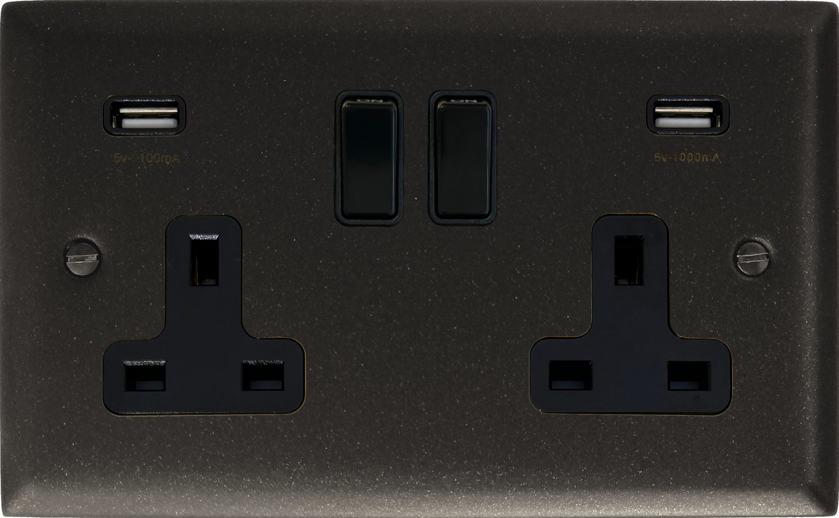Spectrum Graphite Double Socket with USB (Black Switches) - SG910B